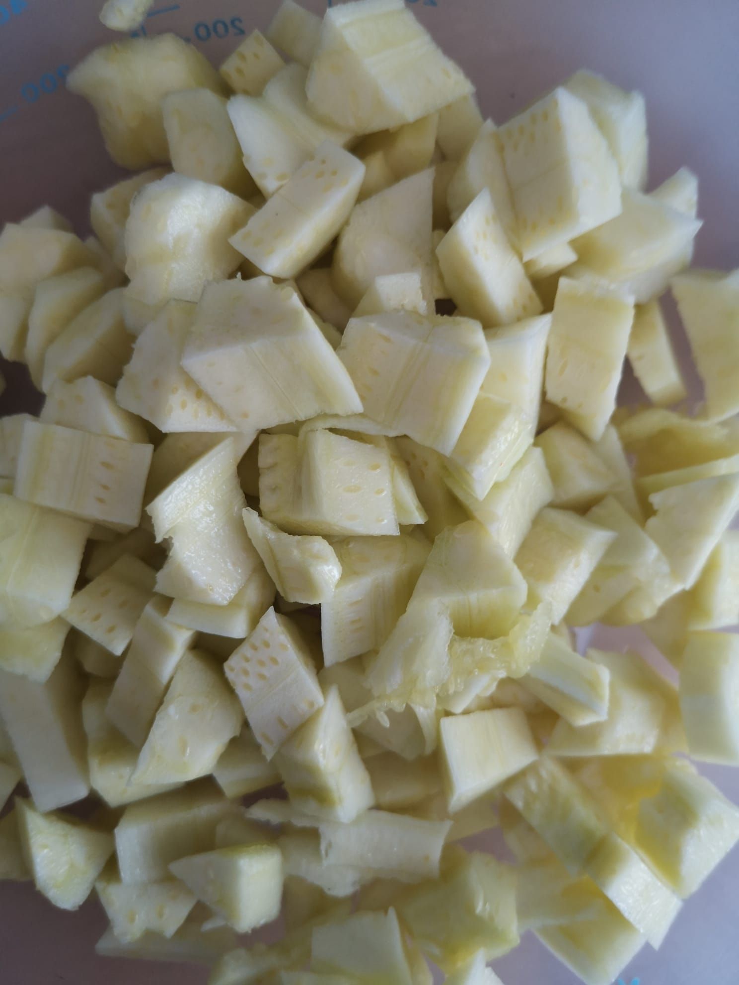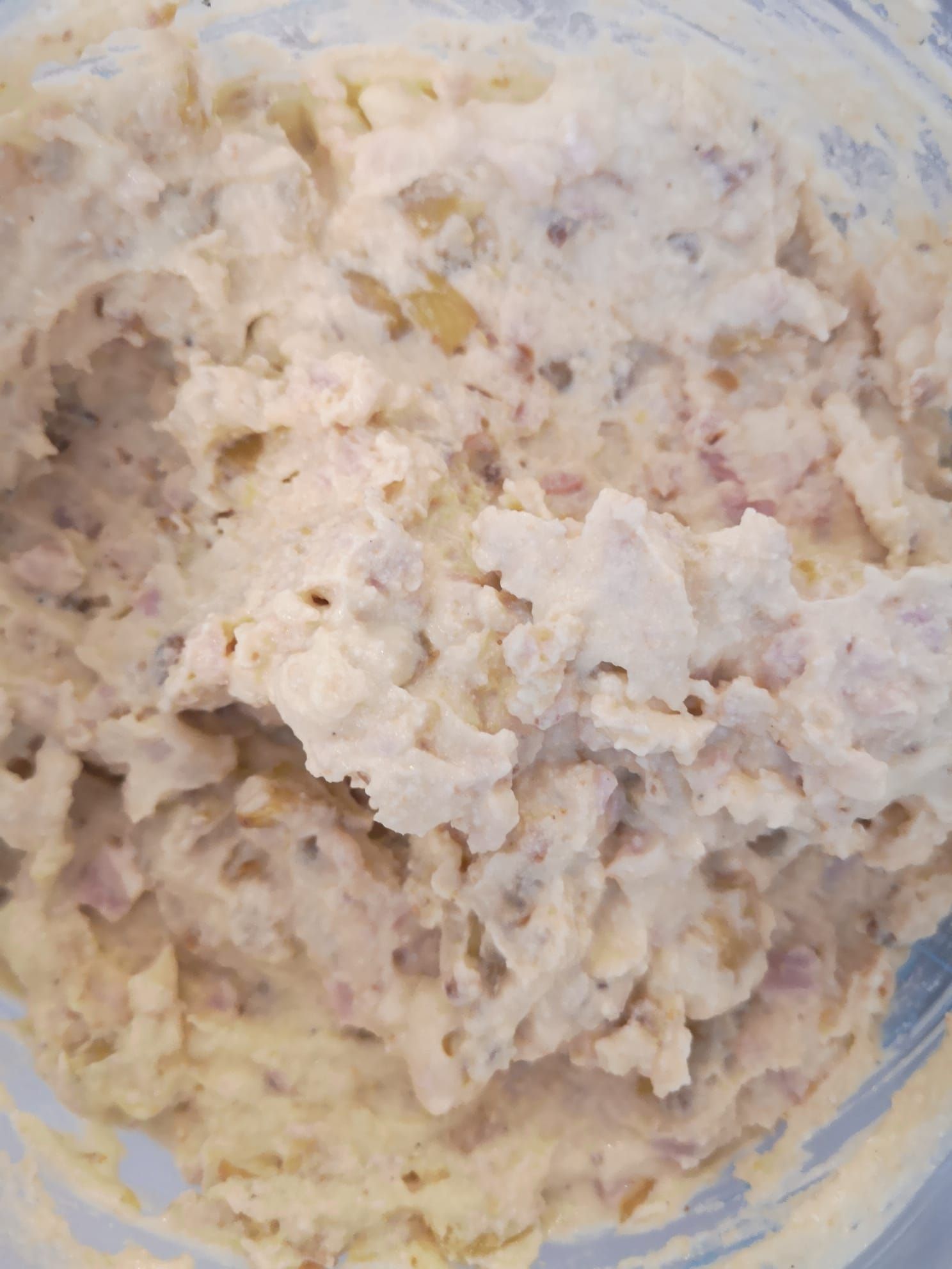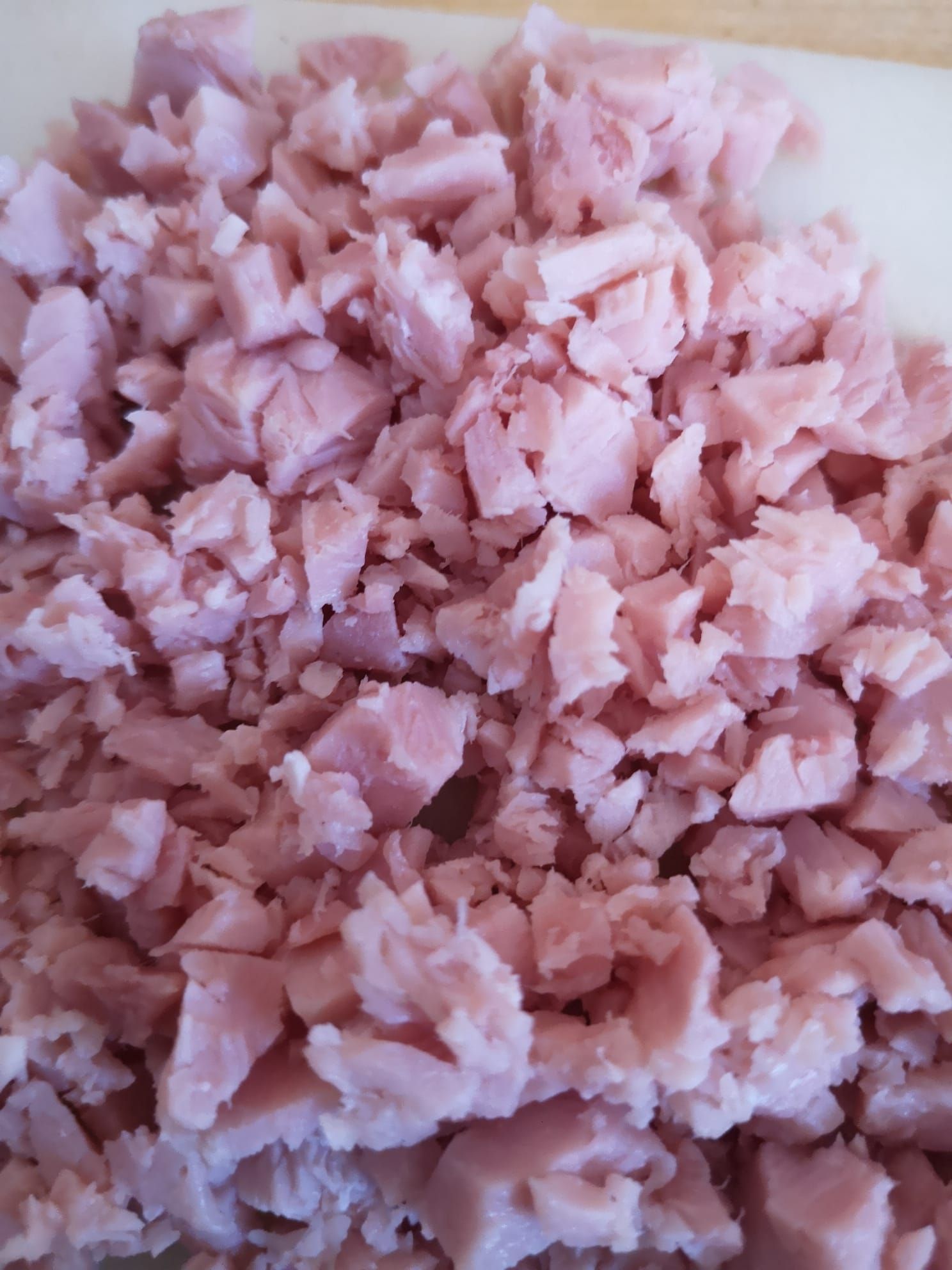 Take the ham and cut it finely into strips. Alternatively, speck slices can be used.