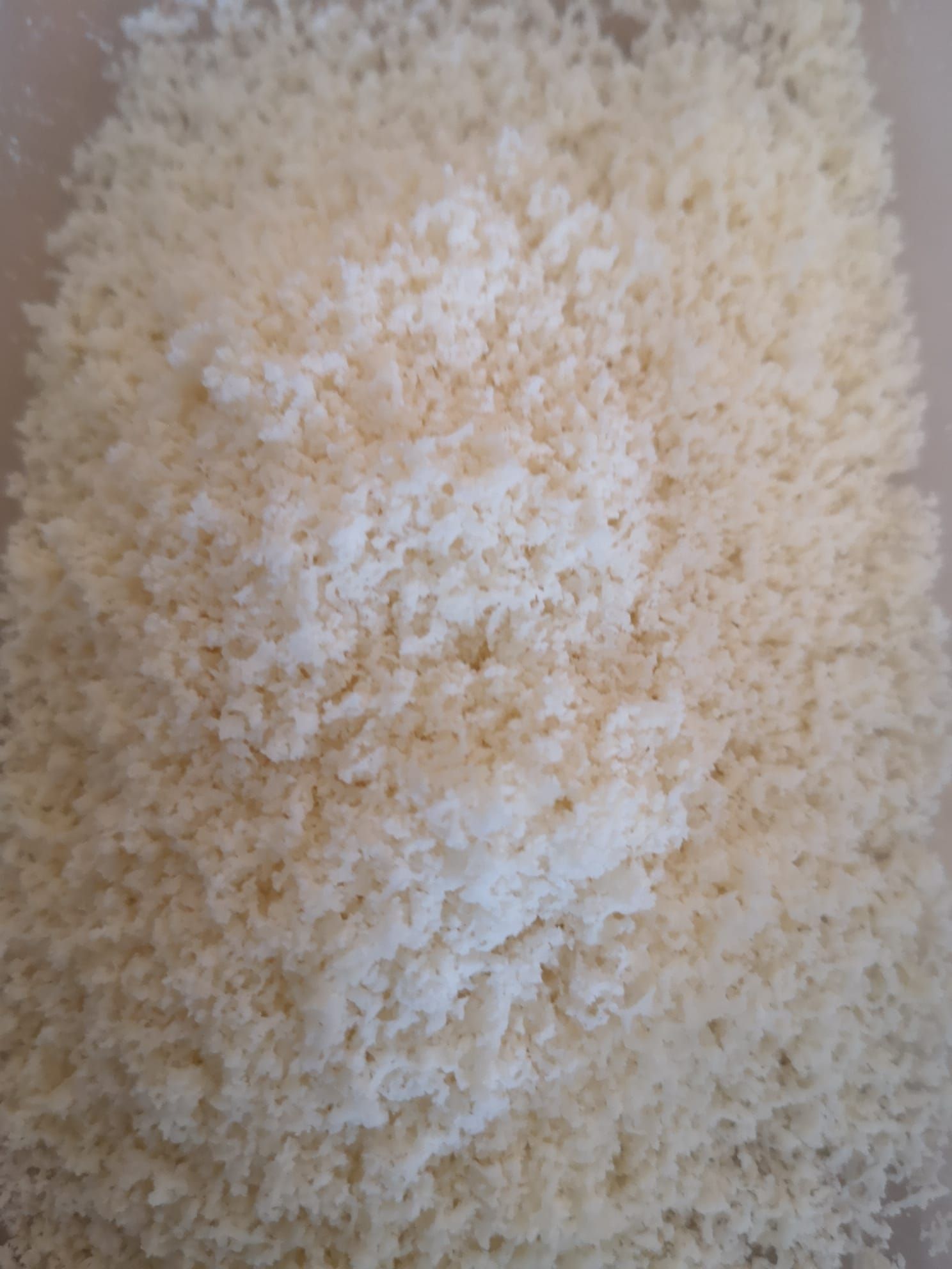Das gekochte Zucchinimark, den Ricotta-Käse, das Ei, Salz und Pfeffer und den geriebenen Parmesan in eine Schüssel geben. Alle Zutaten miteinander vermischen. Zum Schluss die Hälfte der Semmelbrösel hinzugeben und erneut mischen.