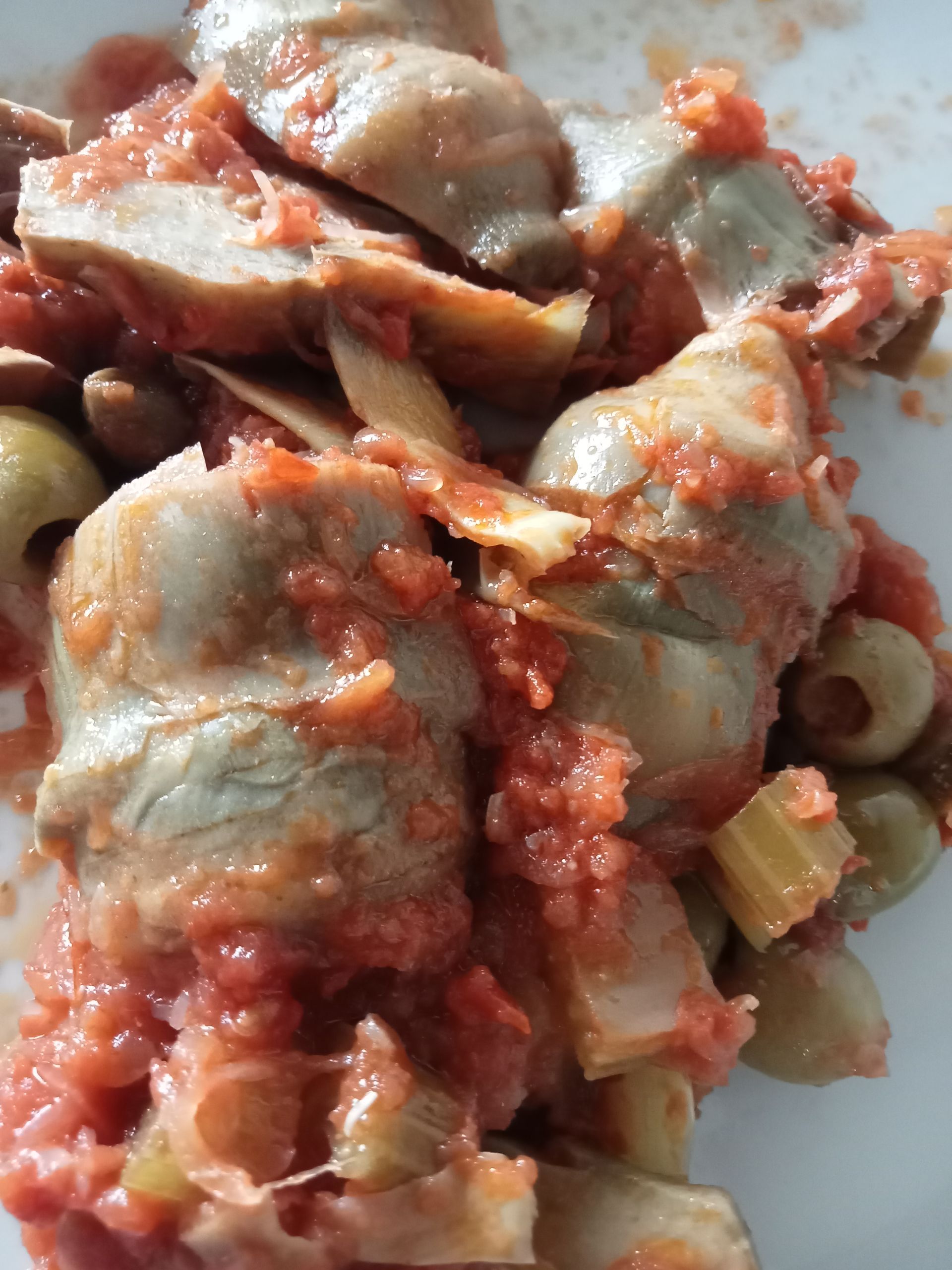 Ingredienti: 6/7 carciofi 100 gr. olive verdi 1 cipolla rossa 50 gr. capperi 3 coste di sedano ½ bicchiere di aceto 3 cucchiaini di zucchero salsa di pomodoro olio di oliva Prendere i carciofi e pulirli, eliminare le foglie più dure tenendo solo il cuore del carciofo con un pezzetto di gambo. Nel fare questa operazione e meglio tenere a disposizione un limone da strofinare sul cuore di carciofo affinché non annerisca e poi tuffare i carciofi in una ciotola con acqua acidulata o con del succo di limone o con dell’aceto. Quindi scolare i carciofi dall’acqua acidulata, tagliarli in quarti o a metà (dipende da quanto grandi sono) e cuocerli in un tegame con un po’ d’olio d’oliva. Farli rosolare un pochino e quindi regolare di sale ed aggiungere acqua, un po’ per volta, fino a cottura. Se la stagione non è quella giusta per trovare i carciofi freschi, si possono usare anche i cuori di carciofo surgelati. Passiamo al sedano. Dopo averlo pulito e lavato, tagliarlo a tocchetti e lessarlo per 10 minuti in acqua leggermente salata. Quindi scolare e tenere da parte. A parte tritare la cipolla. In un tegame fare un soffritto con la cipolla tritata e, quando sarà lievemente dorata ed appassita, aggiungere la passata di pomodoro. Aggiungere i capperi e le olive e far cuocere fino ad ottenere una salsa densa e saporita. Prima di toglierla dal fuoco aggiungere lo zucchero e l’aceto per conferire alla salsa il tipico sapore agrodolce. A questo punto unire alla salsa di pomodoro i carciofi ed il sedano cotto in precedenza e la caponata è pronta. Buona da servire sia calda che tiepida. Zutaten: 6/7 Artischocken 100 g grüne Oliven 1 rote Zwiebel 50 g Kapern 3 Stangen Staudensellerie ½ Glas Essig 3 Teelöffel Zucker Tomatensoße Olivenöl Die Artischocken putzen, dabei die härteren Blätter entfernen und nur das Herz der Artischocke mit einem Stück Stiel aufbewahren. Reiben Sie das Herz der Artischocke mit einer Zitrone ab, damit es nicht schwarz wird, und tauchen Sie die Artischocken in eine Schüssel mit Wasser, das entweder mit Zitronensaft oder Essig gesäuert ist. Dann die Artischocken aus dem gesäuerten Wasser nehmen, vierteln oder halbieren (je nach Größe) und in einer Pfanne mit etwas Olivenöl garen. Etwas bräunen lassen, dann salzen und nach und nach Wasser hinzufügen, bis sie gar sind. Wenn Sie keine frischen Artischocken finden, können Sie auch gefrorene Artischockenherzen verwenden. Kommen wir nun zum Sellerie. Nachdem Sie ihn geputzt und gewaschen haben, schneiden Sie ihn in kleine Stücke und kochen ihn 10 Minuten lang in leicht gesalzenem Wasser. Dann abgießen und beiseite stellen. Die Zwiebel getrennt davon hacken. In einem Topf die gehackte Zwiebel anbraten und, wenn sie leicht gebräunt und verwelkt ist, das Tomatenpüree hinzufügen. Kapern und Oliven hinzufügen und kochen, bis die Sauce dick und schmackhaft ist. Bevor sie vom Herd genommen wird, Zucker und Essig hinzufügen, um der Sauce ihren typischen süß-sauren Geschmack zu verleihen. Nun die Artischocken und den zuvor gekochten Sellerie in die Tomatensauce geben und fertig ist die Caponata. Sie kann heiß oder lauwarm serviert werden. Ingredients: 6/7 artichokes 100 g green olives 1 red onion 50 gr capers 3 celery stalks ½ glass of vinegar 3 teaspoons sugar tomato sauce olive oil Take the artichokes and clean them, removing the harder leaves and keeping only the heart of the artichoke with a piece of stem. When doing this, it is best to have a lemon available to rub on the artichoke heart so that it does not blacken and then plunge the artichokes into a bowl of water acidulated with either lemon juice or vinegar. Then drain the artichokes from the acidulated water, cut them into quarters or halves (depending on how big they are) and cook them in a pan with a little olive oil. Let them brown a little and then adjust the salt and add water, a little at a time, until cooked. If the season is not right to find fresh artichokes, you can also use frozen artichoke hearts. Let's move on to the celery. After cleaning and washing it, cut it into chunks and boil it for 10 minutes in lightly salted water. Then drain and set aside. Separately chop the onion. In a saucepan, sauté the chopped onion and, when lightly browned and wilted, add the tomato puree. Add the capers and olives and cook until the sauce is thick and tasty. Before removing it from the heat, add the sugar and vinegar to give the sauce its typical sweet-and-sour flavour. Now add the artichokes and previously cooked celery to the tomato sauce and the caponata is ready. Good served either hot or lukewarm.